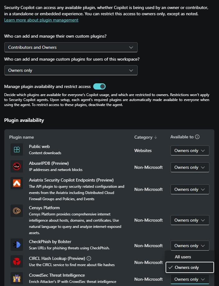 - Microsoft has explicitly stated that Security Copilot roles are not Microsoft Entra roles. The ‘Copilot Owner’ and ‘Copilot Contributor’ only provides access for performing respective actions on Security Copilot’s standalone and embedded experiences. But the thing to note is that the ‘Global Admins’ and ‘Security Admins’ by default becomes the ‘Copilot Owner’ in your tenant. You will also have to explicitly turn off the toggle to unmark all the users of your tenant from being a ‘Copilot Contributor’ to contain the scope of plugin management.